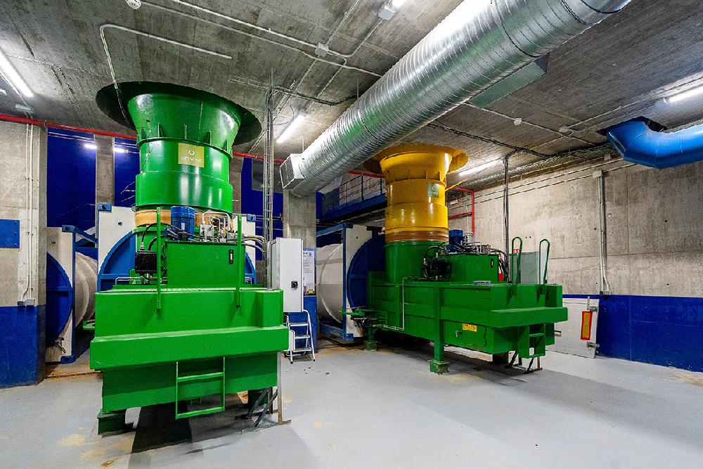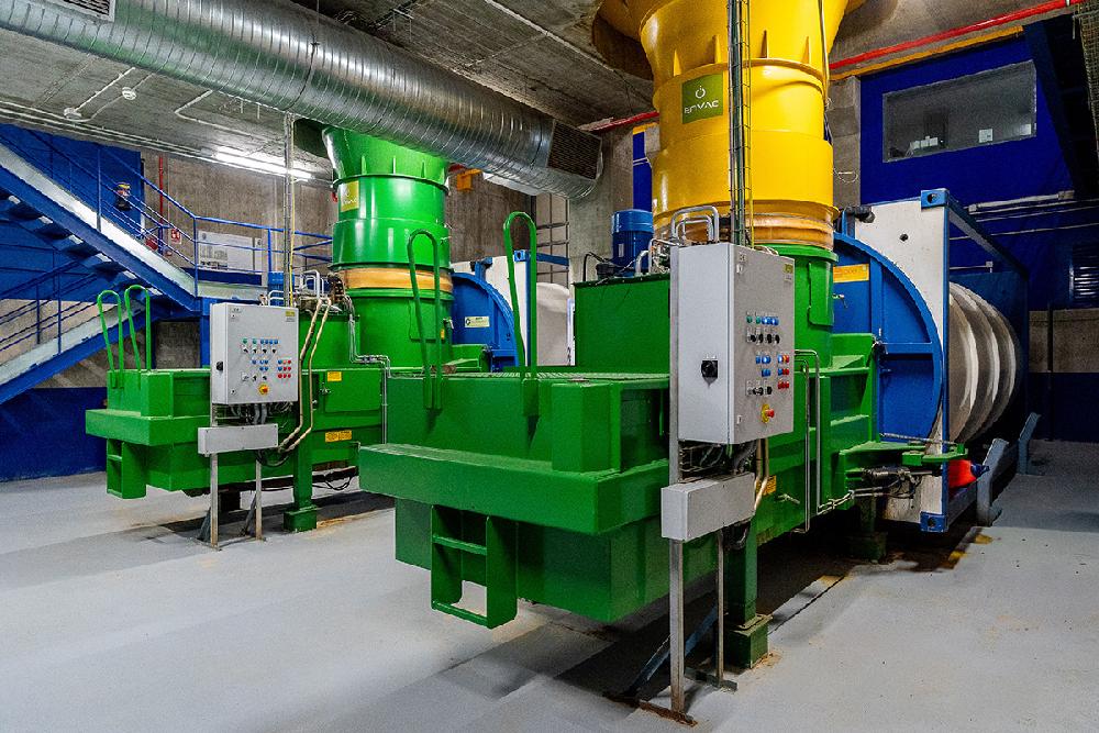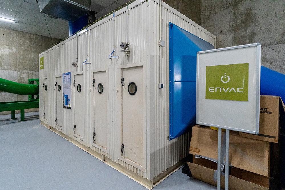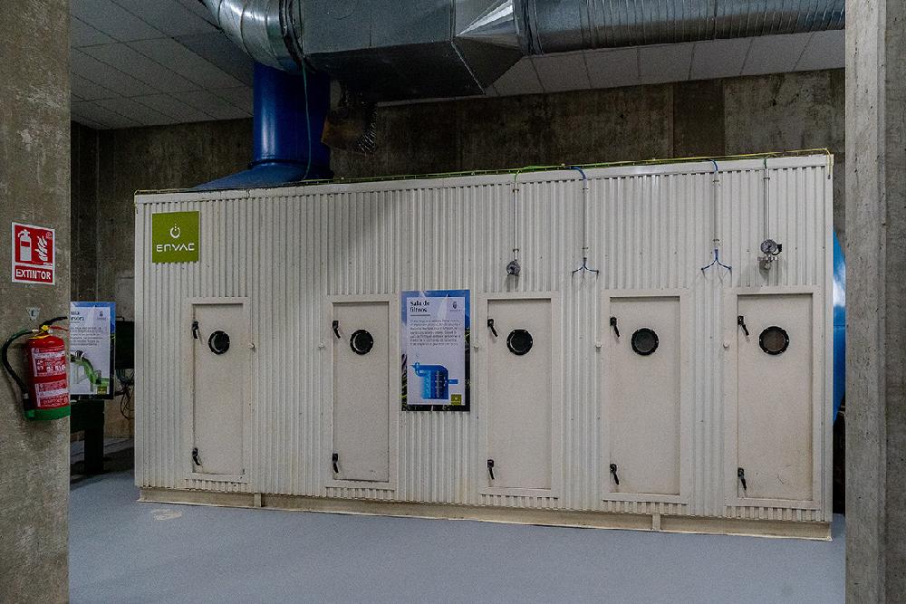 Al final del proceso, el aire que ha transportado los residuos hasta la central se separa de los mismos y pasa a una sala de filtros. Allí se eliminan olores y partículas sólidas, para purificarlo y devolverlo a la atmósfera en condiciones óptimas.