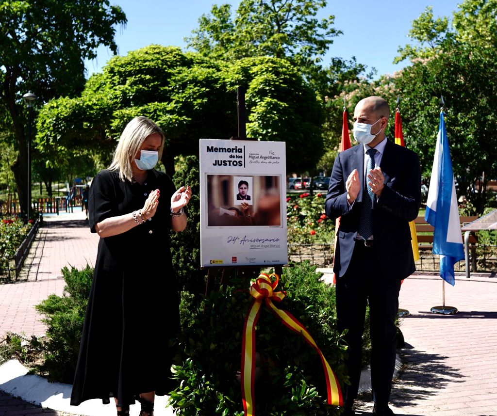 El Ayuntamiento de Majadahonda ha celebrado esta mañana su tradicional homenaje a las víctimas del terrorismo en el día en el que se cumplen 24 años del asesinato del joven concejal de Ermua Miguel Ángel Blanco a manos de la banda terrorista ETA.