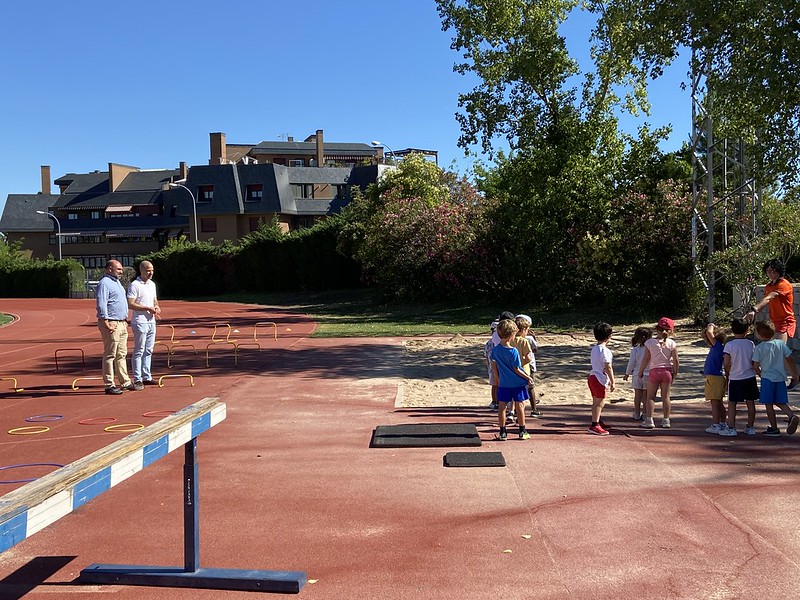 El alcalde de Majadahonda, José Luis Álvarez Ustarroz, ha visitado, acompañado del concejal de Deportes, Eduardo González-Camino, la Pista de Atletismo Valle del Arcipreste, en la que se están celebrando una de las colonias deportivas que han organizado los clubes de Majadahonda para este verano.