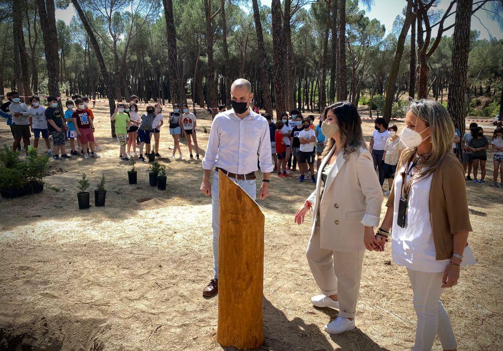 Así, medio centenar de alumnos de 5º de Primaria del colegio Benito Pérez Galdós han participado junto al alcalde, José Luis Álvarez Ustarroz, en esta plantación con la que el Consistorio se adhiere además a la iniciativa “Un árbol por Europa” con la que el Ayuntamiento muestra su compromiso con el cuidado del Medio Ambiente y de sus zonas verdes. De hecho, durante el acto se ha colocado una plaza en el tronco de uno de los 1.000 pinos que se tuvieron que talar tras Filomena y de los que ya se han repuesto 250.