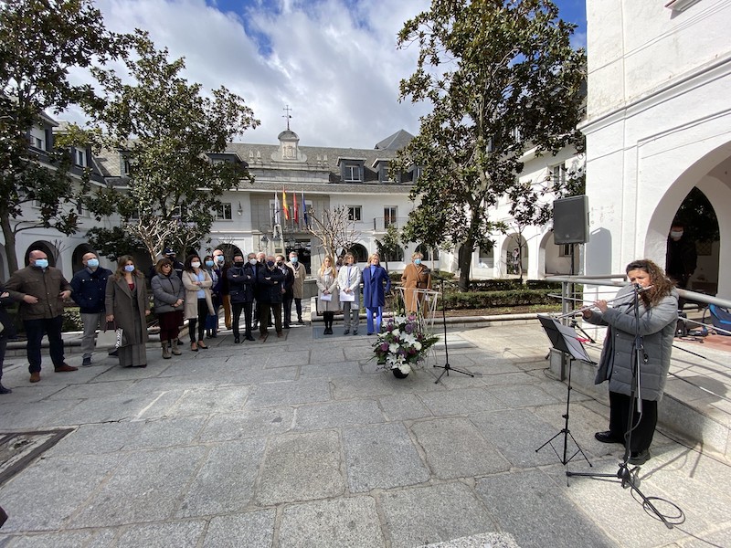 Tanto al inicio como al final del acto, los vecinos que se han sumado al evento celebrado frente al Ayuntamiento de Majadahonda también han podido disfrutar de varias piezas musicales a cargo de la artista de travesera Marta Masilla.