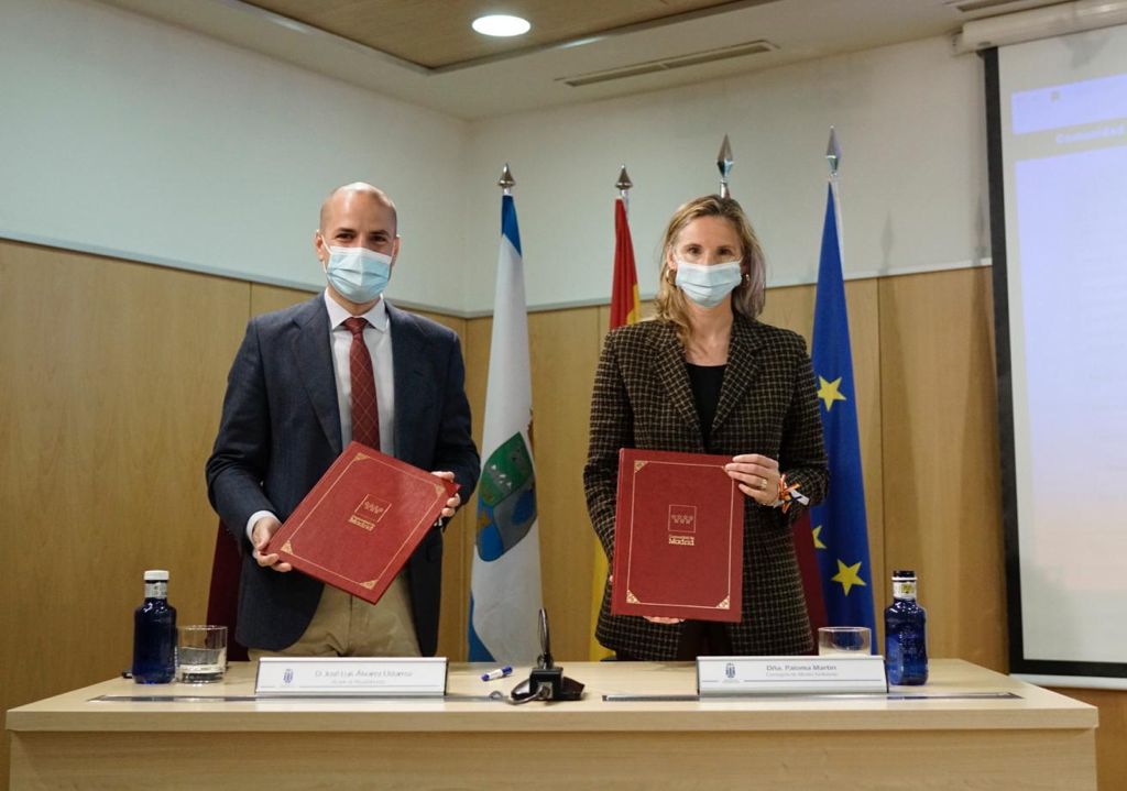 - El alcalde, José Luis Álvarez Ustarroz, y la consejera de Medio Ambiente, Paloma Martín, han rubricado el convenio que facilitará la atracción de inversiones a Majadahonda
