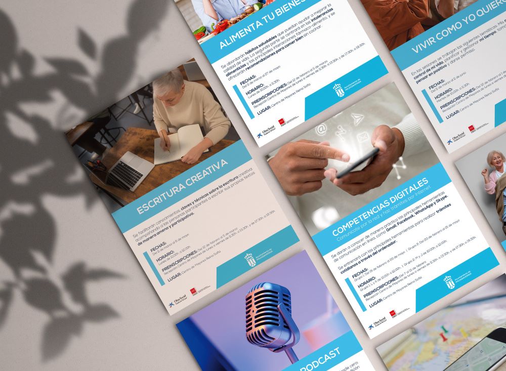 Para aquellas personas que les guste escribir o hablar en público se propone el taller de “Creación de podcast” y el de “Escritura creativa”. Finalmente, y como fomento del desarrollo personal, se realizarán tres talleres: “Vivir en positivo”, “Vivir es descubrirse” o “Vivir cómo yo quiero”.
