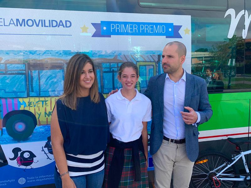 El alcalde de Majadahonda, José Luis Álvarez Ustarroz, acompañado de la concejal de Movilidad, Marina Pont, y miembros del Consorcio de Transportes y la empresa Avanza, ha entregado hoy los premios del concurso Colorea tu Autobús que pretende sensibilizar a los más pequeños con el respeto y cuidado del medio ambiente y el uso del transporte público.