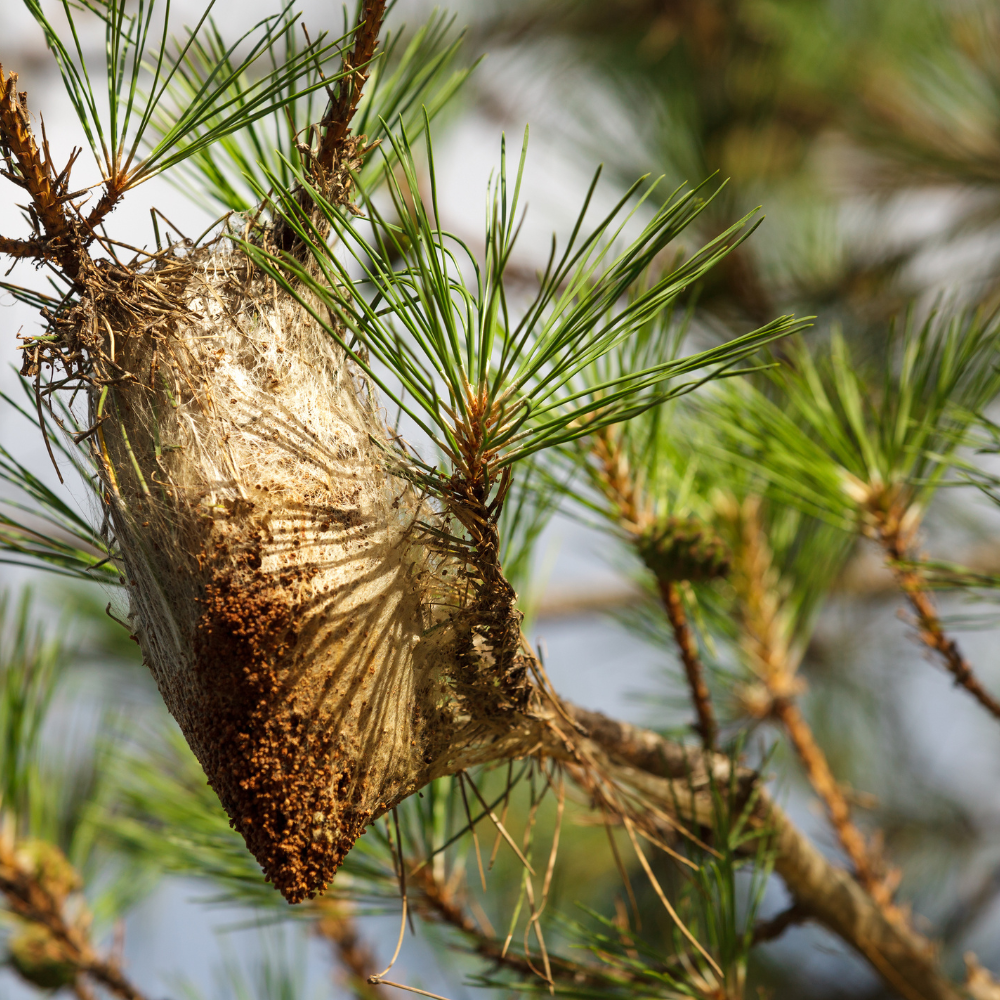 Las orugas procesionarias, de la especie de mariposa Thaumetopoea pityocampa, se refugian durante el invierno en bolsones que tejen en las copas de los árboles. Cuando las condiciones son favorables, y al haber finalizado su desarrollo larvario, bajan al suelo “en procesión” para enterrarse y, finalmente, emerger como mariposas.
