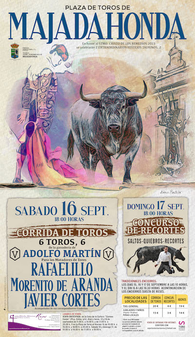 Dentro de las fiestas patronales en honor al Santísimo Cristo de los Remedios, Majadahonda contará con varios eventos taurinos. El sábado 16 de septiembre a las seis de la tarde se celebrará la corrida con seis toros de la ganadería de Adolfo Martín para los matadores Rafelillo, Morenito de Aranda y Javier Cortés. El domingo 17 también a las 18 horas tendrá lugar el concurso de recortes con sus tradicionales saltos y quiebros.