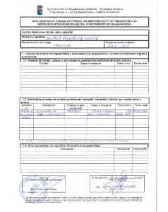 - Declaración Incompatibilidades al inicio