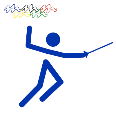 Los tiradores se ponen en guardia con su arma detrás de la línea indicada en el suelo delante de un plastrón donde cuelgan aros de distintos colores en distintos blancos. El juez dirá colores y los deportistas deberán tocar en el centro del aro con el arma en primer lugar para ganar el punto. Se realizarán 3 asaltos con cada uno de los siguientes gestos: